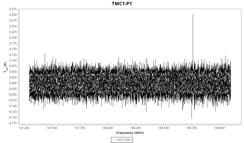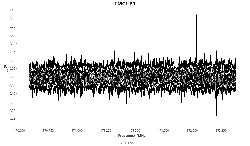 CAUTION: Do not trust in wide lines (line width > 2 km/s) that might be due to baseline problems and/or atmospheric lines. Do not trust in “exotic” line identifications that are more likely due to a spurious match with the line catalogue.